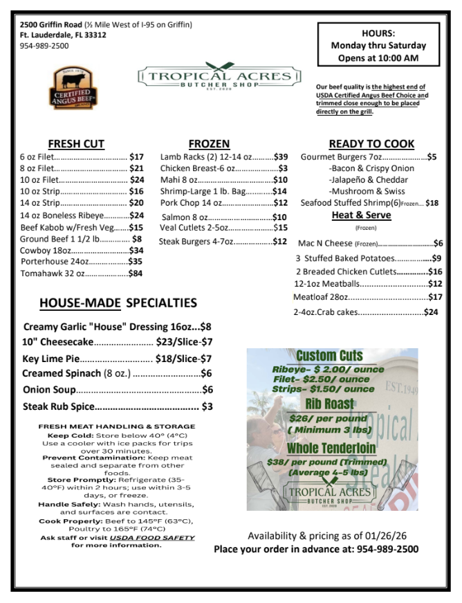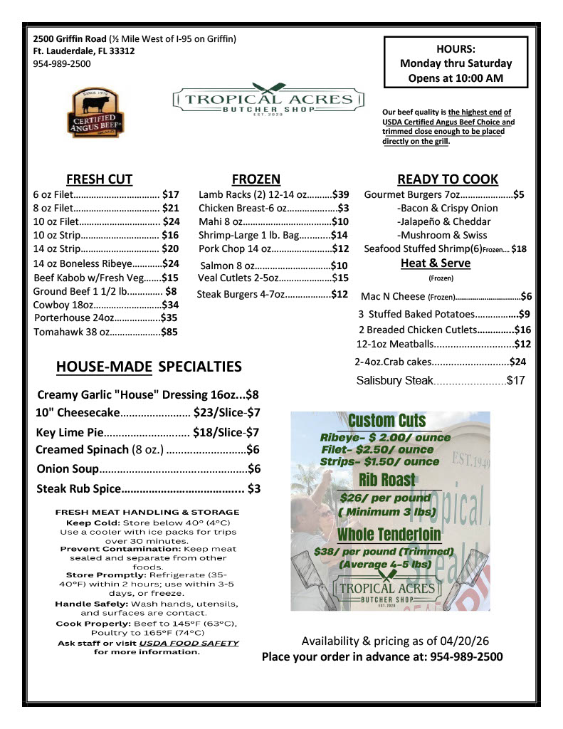 Butcher Shop hours (Mon-Sat)