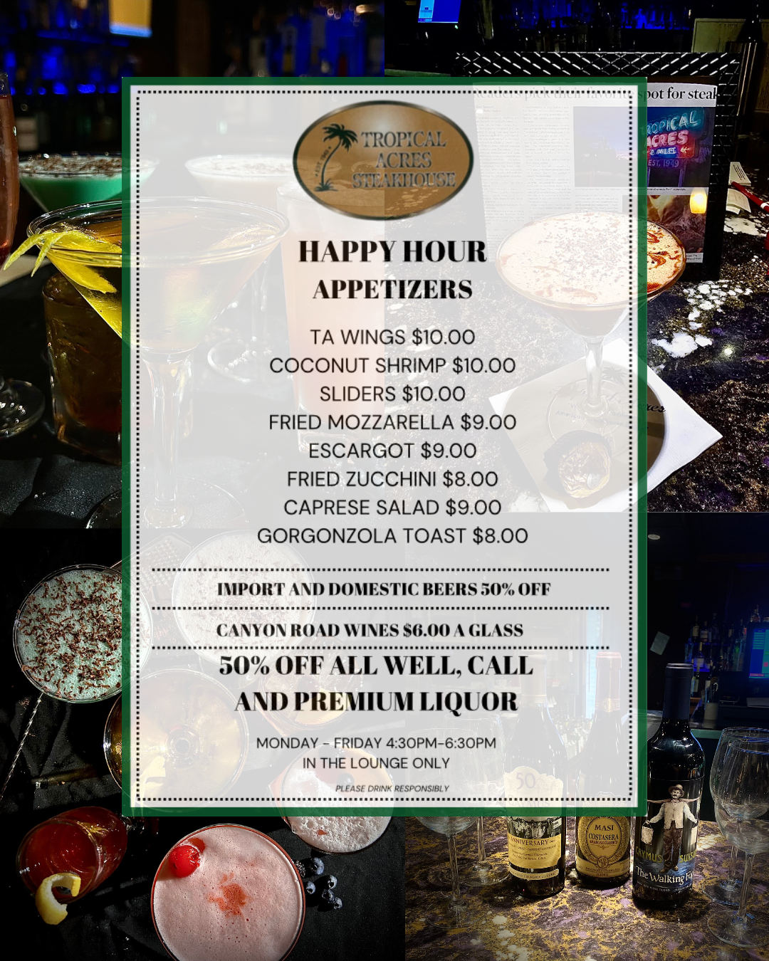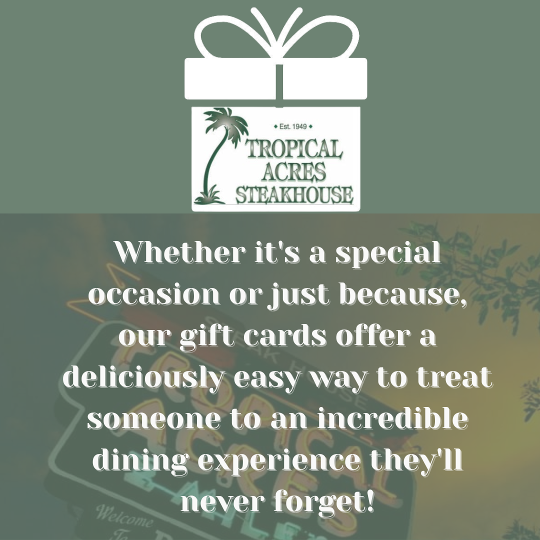 Tropical Acres Steakhouse has been owned and operated by the same family since 1949. We’ve seen many changes and grown with the years. Our strong commitment to maintain quality and prices has enabled us to withstand the economic ups and downs faced by many South Florida restaurants over the decades.